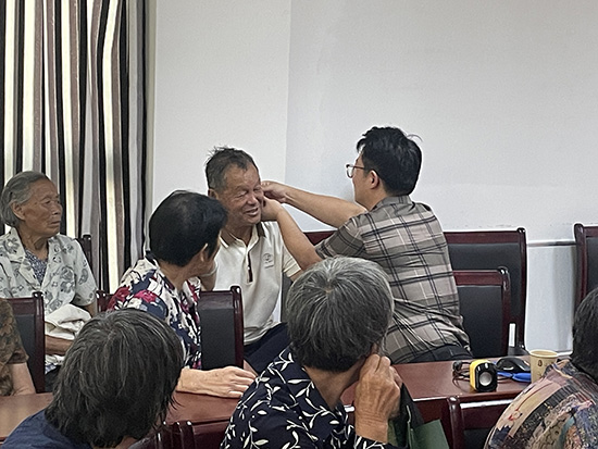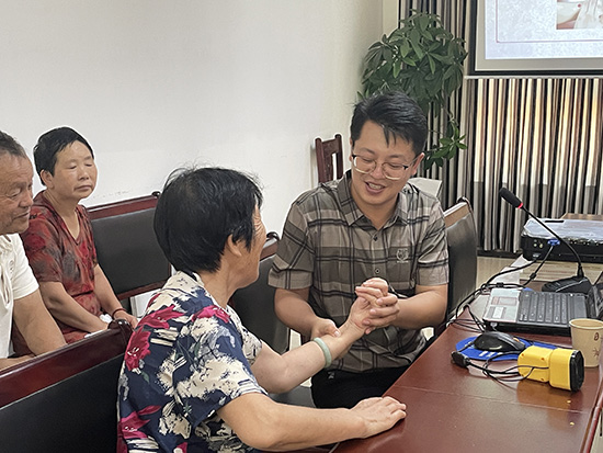 為方便老人實踐,翁主任還現場示范了簡便易行的穴位按摩技巧,指導大家通過按摩足三里、涌泉穴等穴位來改善睡眠、增強體質。互動環節氣氛熱烈,老人們踴躍提問,就高血壓、關節疼痛等關心的健康問題向翁主任請教。翁主任耐心細致地逐一解答,并根據不同情況提供了個性化的養生建議。翁主任把脈問診,短短一小時為10余位老人量身定制“養生小方”,現場掌聲雷動。