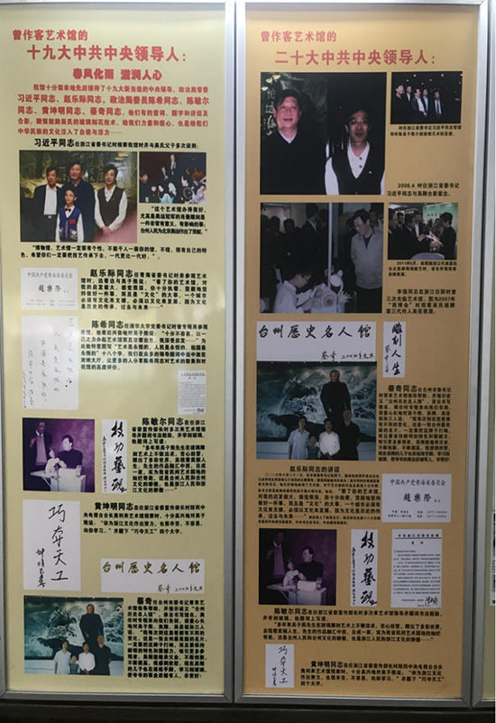 “玻雕文化”書院積極參與全民終身學(xué)習(xí)體系的構(gòu)建,由葭沚成校牽頭,以“玻雕文化”書院為載體,采取非物質(zhì)文化遺產(chǎn)的傳承與社會服務(wù)相結(jié)合的方式,服務(wù)全民終身學(xué)習(xí),到各個社區(qū)、文化禮堂、企業(yè)等進行非遺展示,讓群眾參與非遺體驗,讓非物質(zhì)文化為城市、為市民的生活添加色彩,傳承中華民族傳統(tǒng)技藝和豐富居民精神生活、提升居民文化自信的雙重價值,培養(yǎng)大國工匠精神,也為建設(shè)祖國的美好未來貢獻力量,2023年“玻雕文化”書院獲評臺州市全民終身學(xué)習(xí)品牌項目。書院自成立以來,社會影響力不斷擴大,各類各級媒體多次報道“玻雕文化”書院在全民終身學(xué)習(xí)中做的有益的嘗試,2023年4月21 日中央電視總臺在葭沚老街舉辦“推動共同富裕浙江研討會暨媒體行動”直播報道,“玻雕文化”書院負責(zé)人孫亮以非“遺潤童心,文化共傳承”為主題,在報道中宣傳介紹“玻雕文化”。習(xí)近平總書記任浙江省委書記時視察藝術(shù)館時多次談到,“這個藝術(shù)館辦得很好,很有自己的特色,希望你們一定要把技藝傳承下去,一代比一代更好”。國務(wù)院總理李強同志,全國人大常委會委員長趙樂際同志,中央政治局常委蔡奇同志,中央政治常委陳希同志,中央政治局委員陳敏爾同志,中央政治局委員黃坤明同志,原全國人大常委會委員長張德江同志,原全國政協(xié)主席賈慶林同志先后視察藝術(shù)館,他們有的留詞、題字和講話及合影。鞭策鼓勵吳氏的玻璃雕刻技藝,他們的鼓勵給了我們力量和信心,也是給我們中華民族的文化注入了自信與活力。玻璃雕刻藝術(shù)品曾作為“ 國禮 ”贈送墨西哥總統(tǒng)卡爾德龍、法國前總統(tǒng)希拉克、美國前總統(tǒng)老布什、克林頓、加拿大總理、聯(lián)合國前秘書長安南、潘基文等,并得到他們的回信及高度評價,“玻雕文化”走向了世界。