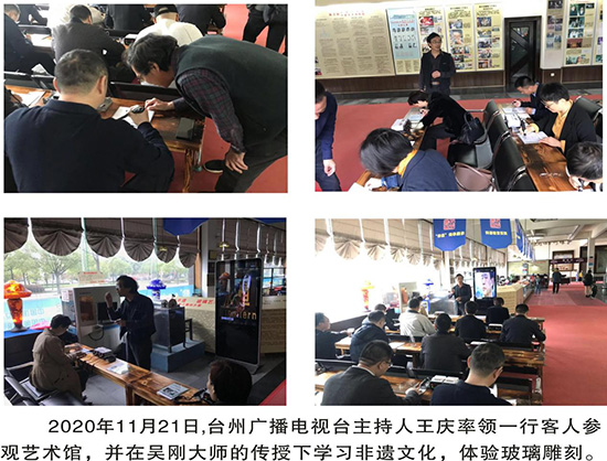 吳子熊玻璃雕刻藝術(shù)是臺州的一張名片,原中央政治局常委、全國人大常委會委員長吳邦國曾題詞:這是名副其實的“絕技”。但隨著時代的發(fā)展,能雕刻出精美絕倫玻璃藝術(shù)品的匠人慢慢減少,玻雕文化面臨著傳承的危機。“玻雕文化”書院的創(chuàng)建,是更好地傳承民族文化瑰寶的需要。臺州玻璃雕刻不但要實現(xiàn)技藝的傳承發(fā)展,更要實現(xiàn)價值的提升和創(chuàng)新。央視遠方的家播出吳氏玻雕第二代傳人吳剛的精湛技藝及工匠精神和家國情懷,浙江開放大學(xué)也在書院拍攝了玻雕藝術(shù)專題片,宣傳推廣“玻雕文化”。