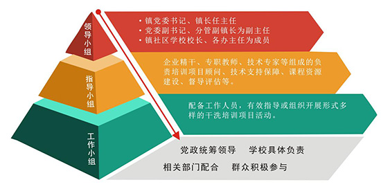 建立“領導小組+指導小組+工作小組”的工作體系和部門協同合作、數據共享機制。成立由鎮黨委書記、鎮長任主任,黨委副書記、分管副鎮長為副主任,鎮社區學校校長、各辦主任為成員的共富課堂干洗培訓工作領導小組。領導小組下設由企業精干、專職教師、技術專家等組成的負責培訓項目顧問、技術支持保障、課程資源建設、督導評估等指導小組。指導小組配備工作人員,有效指導或組織開展形式多樣的干洗培訓項目活動。形成“黨政統籌領導、學校具體負責、相關部門配合、群眾積極參與”的管理體制和運行機制。
