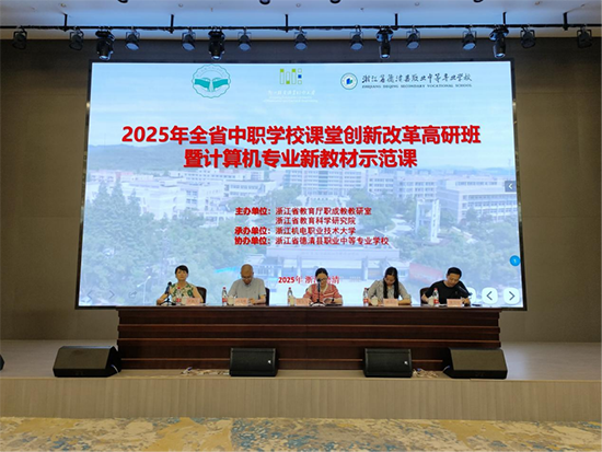 為深入貫徹浙江省新教材課程改革要求,推進中職計算機類專業課堂教學創新,強化新教材應用實效,7月16日,2025年全省中職學校課堂創新改革高研班暨計算機類專業新教材示范課培訓在德清職業中專舉行。此次培訓班由浙江省教育廳職成教教研室、浙江省教育科學研究院主辦,浙江機電職業技術大學承辦,德清職業中專協辦,來自全省180余名計算機專業帶頭人、負責人及骨干教師參加。