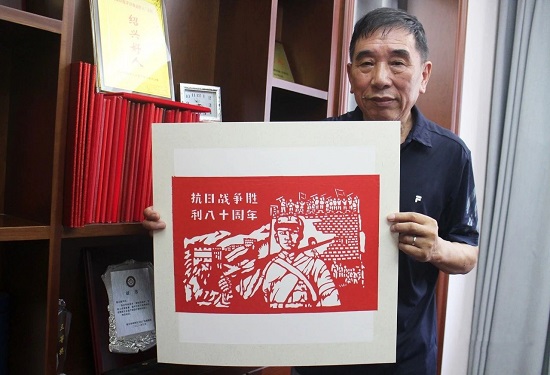 “我有剪紙這門手藝,就想通過自己的方式,為抗戰(zhàn)勝利80周年獻上一份心意。”78歲的陳長根語氣莊重,“希望現(xiàn)在的年輕人能通過這些作品記住,今天的幸福生活,是千千萬萬先烈用生命換來的。”