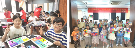 7月22日,荷花塘社區(qū)“悅芽?jī)?rdquo;假日學(xué)校的教室里 一場(chǎng)以“學(xué)有所“悅” 多彩童趣”為主題的黏土拼貼畫(huà)活動(dòng),讓近30名孩子在假期里收獲了滿滿的快樂(lè)與成長(zhǎng)。活動(dòng)現(xiàn)場(chǎng),來(lái)自學(xué)校黏土社的同學(xué)們向小朋友們上了一節(jié)有趣的黏土課:介紹了黏土拼貼畫(huà)的基本技巧,包括黏土的揉捏、塑形以及拼貼組合的方法,并在活動(dòng)過(guò)程中,黏土社的同學(xué)們不時(shí)地走到孩子們身邊,給予他們指導(dǎo)和鼓勵(lì)。活動(dòng)尾聲,孩子們紛紛展示出自己的作品,每一幅作品都充滿了想象力和創(chuàng)造力。
