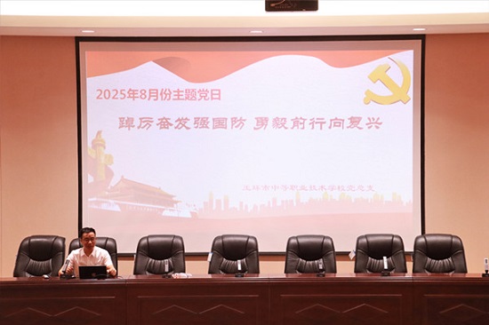8月29日下午,玉環市中等職業技術學校黨總支組織全體黨員在B系部樓階梯教室開展以“踔厲奮發強國防 勇毅前行向復興”為主題的8月份主題黨日活動。此次活動旨在深化國防教育,強化黨員責任擔當,激發全體黨員為學校高質量發展貢獻力量的熱情。