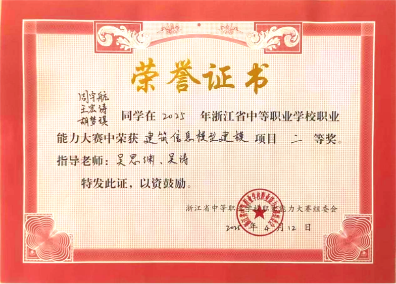 教學(xué)成果輻射顯著:學(xué)生1+X考證通過率超98%,獲省BIM競賽二等獎等多項榮譽。教師團隊斬獲省級職業(yè)能力比賽二等獎、市級教學(xué)能力大賽一等獎等佳績,形成可推廣的“BIM+教學(xué)”雙軌示范成果,為專業(yè)建設(shè)注入新動能。