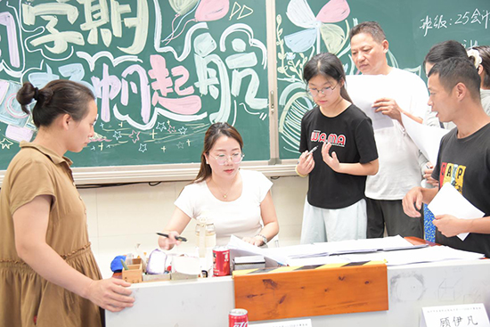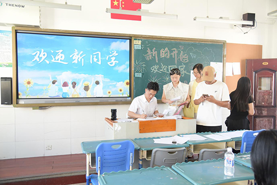 班主任老師們是新生入校后的“第一任導(dǎo)師”,“歡迎你,新同學(xué)!”在各個(gè)新生教室里,班主任老師們?cè)缫炎龊昧顺浞值臏?zhǔn)備。有的班級(jí)黑板上寫滿了溫馨的歡迎詞,有的班級(jí)新增了勵(lì)志的迎新展板,有的班級(jí)貼心地準(zhǔn)備了小禮物或?qū)I(yè)特色產(chǎn)品,讓整個(gè)教室充滿了家的溫暖。班主任們耐心地為新生辦理報(bào)到手續(xù),核驗(yàn)資料,介紹開學(xué)注意事項(xiàng)、寢室分布等,面對(duì)新生和家長(zhǎng)們的各種疑問,班主任們不厭其煩地一一解答,努力消除他們的顧慮。一句句叮嚀,一聲聲囑托,飽含著班主任對(duì)新生的深切期望與無私關(guān)愛。