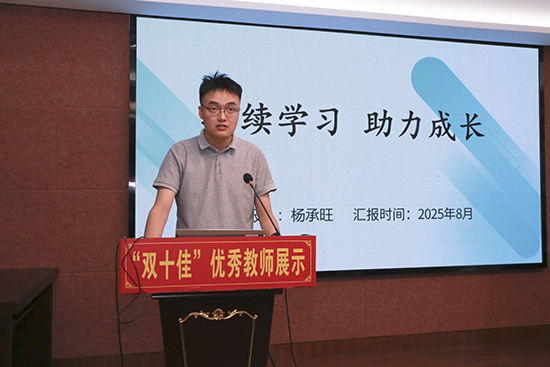 8月29日上午,為進一步發揮優秀教師的榜樣引領作用,激勵每一位教師接續奮斗、創新實干,學院舉行了第七屆“雙十佳”優秀教師先進事跡展示活動。活動由副書記孫甫永主持,黨總支委員駱秀芳、副院長周世強分組點評。