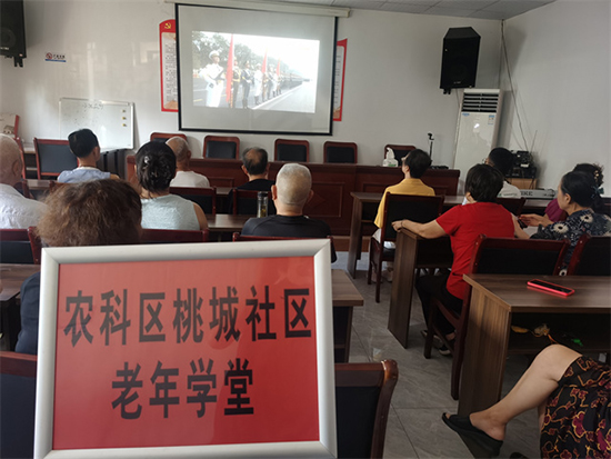 當天上午,隨著直播畫面中雄壯的國歌奏響,老年學堂里瞬間安靜下來,老人們紛紛挺直腰板,目光緊緊鎖定在屏幕上。當受閱方陣邁著整齊劃一的步伐依次亮相時,活動室里不時響起陣陣掌聲。在眾多學堂中,長樂社區老年學堂的氛圍尤為特殊——這里的村民們心中都揣著一份別樣的期待,因為社區村民毛立婷正是本次閱兵女民兵方陣的一員。?