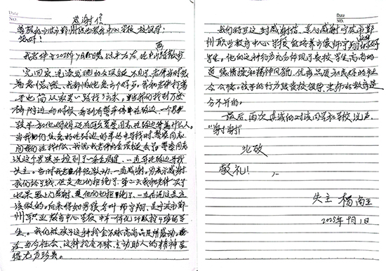 9月1日開學當天,失主夫妻還特地寫來感謝信,字里行間流露出對師宇翔的感激與贊美之情。