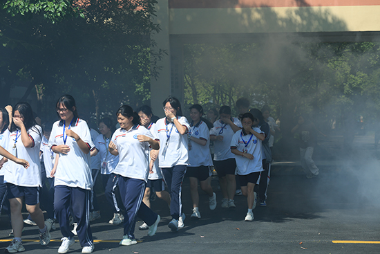 上午9時30分,隨著急促的警報聲響起,演練正式拉開帷幕。全體學生在任課老師的帶領下,迅速進入應急狀態。他們按照預定路線,如離弦之箭般從教學樓和實訓樓有序撤離,腳步匆匆卻有條不紊。最終,全體師生在行政樓南廣場迅速完成集合,整個疏散過程僅用時4分09秒。這一成績的背后,是師生們良好的應急反應能力和嚴謹的組織紀律性的生動體現。