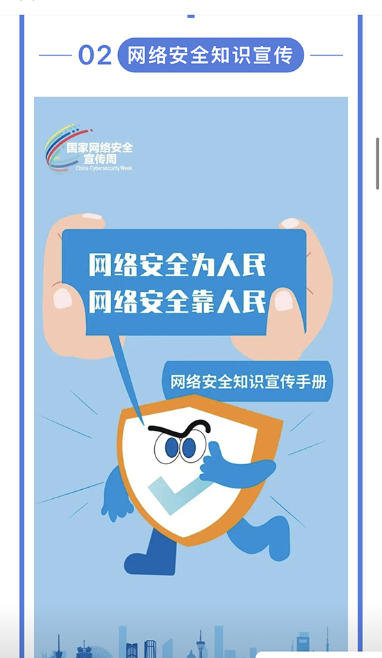 推送一期國家網絡安全宣傳周專題的微信公眾號,引導帶動師生、家長全面了解網絡安全知識并積極防范,提高自身網絡與信息安全意識和識別各類網絡與電信詐騙方式的能力,從而提高宣傳教育周活動的覆蓋面和實效性。