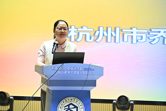 杭州市教育科學研究院副院長洪彬彬首先致辭,她指出,在“人工智能+”與“職普融通”的新背景下,教師要持續學習,吸取國內外先進教學理念,借鑒各級各類教學同行的有效教學模式,特別是要深度研究實施教育戲劇,高效促成英語學科核心素養落地。
