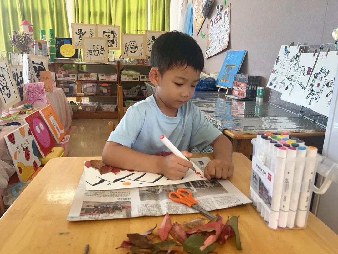 秋葉感悟。秋天的大自然到處都是美景,來一場美上加美的活動吧。用樹葉拼貼圖案,不乏藝術享受之美。各色各樣的樹葉,在幼兒們的精挑細選下來到手中,坐在教室,對這些不同色彩、形狀的樹葉拼貼組合,不一會兒就變成了一幅幅美麗的畫。樹葉拼貼畫,讓幼兒們對植物有了更深的觀察和記憶,創意拼貼,一幅幅畫展示了幼兒們的想象力及創造力。