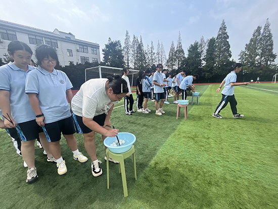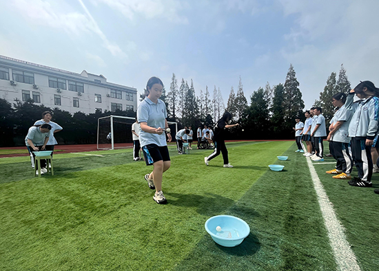 現場,一個盛滿清水的盆中漂浮著象征圓月的白色乒乓球,同學們分成三組,手持筷子,依次接力夾取“月亮”。過程中,大家屏息凝神、默契配合,夾球時的緊張、傳遞時的歡笑,讓現場洋溢著輕松愉快的氛圍。