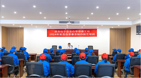 “一人富不是真的富,大家富才是真的富!”這是宋昌美時刻掛在嘴邊的一句話。2001年4月,宋昌美牽頭成立了溪龍鄉(xiāng)女子茶葉合作社,合作社由最初的8戶茶農(nóng),發(fā)展到40多戶,直至如今的200多戶女性茶農(nóng)。合作社定期開展手工制茶比賽,傳承安吉白茶制作技藝,舉辦專業(yè)培訓,培養(yǎng)茶產(chǎn)業(yè)專業(yè)人員,截止目前,合作社已培養(yǎng)高級評茶員、茶藝師、茶葉加工工共502人。同時,合作社建立平臺,將生產(chǎn)技術(shù)攻關(guān)、新技術(shù)的應(yīng)用以及新產(chǎn)品研發(fā)和技能人才培養(yǎng)等進行有機結(jié)合,通過課堂培訓、實地教學等方式示范推廣。為方便合作社成員學習,她投資興建的白茶服務(wù)中心綜合大樓中,專門開辟了可容納100余人學習的遠程教育播放室。截止目前,合作社已開辦茶園管理講座80余場,全鄉(xiāng)有50%的茶農(nóng),約2000人參與了安吉白茶種植學習。在她的帶動下,茶產(chǎn)業(yè)解決了本地和周邊鄉(xiāng)鎮(zhèn)3萬多人次的季節(jié)性就業(yè)問題。全鄉(xiāng)人均收入由6年前的1000多元上升到了1萬多元。