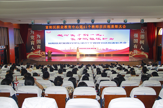 杭州市富陽區(qū)職業(yè)教育中心于9月5日中午,在富陽區(qū)職業(yè)教育中心綜合報(bào)告廳舉行第41個(gè)教師節(jié)慶祝表彰大會(huì)。大會(huì)以“凝心實(shí)干創(chuàng)一流,聚力賦能續(xù)新篇”為主題,致敬平凡中的偉大,禮贊講臺(tái)上的光芒。本次會(huì)議由張宇卓老師主持,大會(huì)在雄壯的國歌聲中拉開帷幕。