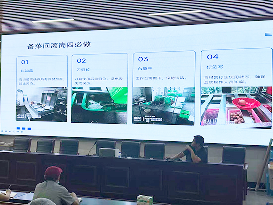 培訓(xùn)會(huì)上,孫捷副主任首先通過(guò)現(xiàn)場(chǎng)實(shí)拍圖片,直觀指出了當(dāng)前食堂工作中存在的九類典型安全隱患,包括地面積水、面粉未密封存放、防鼠板未規(guī)范使用等問(wèn)題。針對(duì)這些隱患,他對(duì)照食品安全規(guī)范,對(duì)物品歸位、工具清潔、離崗管理、更衣戴口罩等環(huán)節(jié)提出了明確、細(xì)致的操作要求,強(qiáng)調(diào)全體員工應(yīng)在日常工作中嚴(yán)格落實(shí)各項(xiàng)衛(wèi)生管理制度,注重細(xì)節(jié),杜絕安全隱患。參訓(xùn)員工認(rèn)真聆聽、積極對(duì)照反思,紛紛表示將在今后工作中進(jìn)一步增強(qiáng)責(zé)任意識(shí),注重操作細(xì)節(jié),持續(xù)改進(jìn)不足,切實(shí)將“隱患清零”落實(shí)到每一個(gè)工作環(huán)節(jié)。