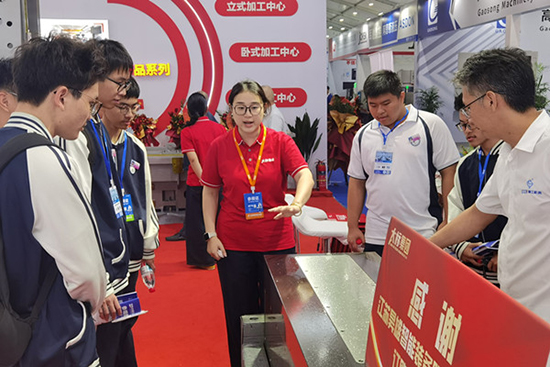 參觀過程中,同學們分組觀看設備運行演示,認真聆聽企業技術人員的講解,深入了解編程操作、工藝設計和設備維護等實際問題。面對展出的各類高端裝備,大家表現出濃厚的興趣,紛紛與參展企業請教溝通,學習機床性能、加工特點及外觀設計等方面的細節。