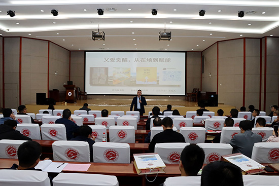 浙江省家庭教育講師團成員、省特級教師、“父范學堂”創始人周炳炎受邀作開班“第一課”。周老師以“父愛覺醒:從在場到賦能”為題,理論聯系實際,簡述了當前青少年成長中的不良趨勢,詳盡講解了父親在家庭教育中有著不可替代的作用。周老師強調,父親學員們要有質量地陪伴孩子,做好孩子的榜樣,堅持正面鼓勵引導,尊重孩子的夢想和興趣,爭當一個合格的“好爸爸”。