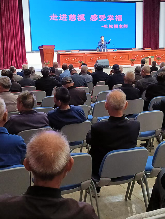 講座中,杜松根老師以深厚的文化積淀和親切的鄉音,引領老人們進行了一場穿越時空的“慈溪之旅”。他并未停留在歷史資料與數據的簡單羅列,而是從老人們熟悉的日常生活、風土人情入手,娓娓道出慈溪從濱海小鎮到現代都市的滄桑巨變。從“青瓷文化”的悠遠底蘊,到“圍墾精神”的世代傳承;從家門口日新月異的城市面貌,到“慈溪智造”享譽全國的驕傲成就,杜老師用一個個鮮活的故事、一組組今昔對比的生動影像,將“幸福”這個宏大的主題,具象化為老人們可感、可知、可憶的溫暖片段。學員們紛紛表示,慈溪不愧是“中國最具幸福感城市(縣級市)”,現場掌聲與笑聲交織,氣氛熱烈融洽。