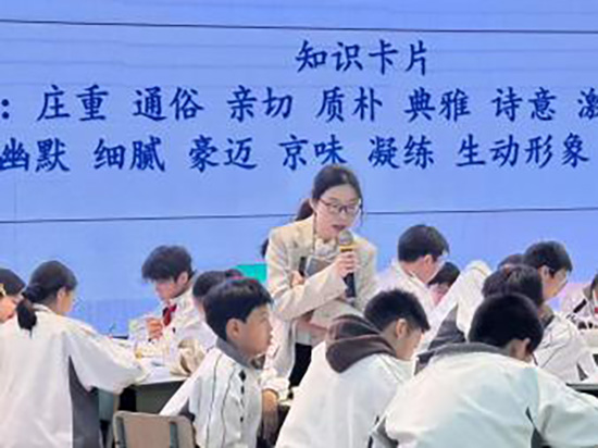 桐鄉(xiāng)三中周春梅老師執(zhí)教《我的白鴿》,以“白鴿參加閱兵”為情境,引導(dǎo)學(xué)生撰寫推薦語并借助AI生成視頻,課堂富有創(chuàng)新活力。長興實驗中學(xué)陳超老師執(zhí)教《散步》,依托省編《作業(yè)本》,通過朗讀指導(dǎo)和文本細(xì)讀,引導(dǎo)學(xué)生深入理解文本。孫茵老師則融合繪畫與詩歌,執(zhí)教《唐詩五首》,引導(dǎo)學(xué)生感受意象與意境之美。林城中學(xué)汪涵、孫輝老師分別以“寄景抒情”設(shè)計“制作明信片”,繪制思維導(dǎo)圖和三大任務(wù)來引導(dǎo)學(xué)生破譯山水文字密碼并聯(lián)系自身表達(dá),領(lǐng)悟山水文化內(nèi)涵。龍山中學(xué)董藍(lán)紫老師以“山水有清音”為主線,串聯(lián)單元文本,實現(xiàn)知識整合與能力進階。和平中學(xué)陸燕老師和古城中學(xué)孫悅老師分別執(zhí)教八上第四單元起始課,陸老師以“讀懂散文情思”為目標(biāo),設(shè)計“找形象、解情思、創(chuàng)插畫”的學(xué)習(xí)路徑;孫老師則以“散文小編輯”為情境,引導(dǎo)學(xué)生品讀語言、感受情味,初步把握作家語言風(fēng)格。