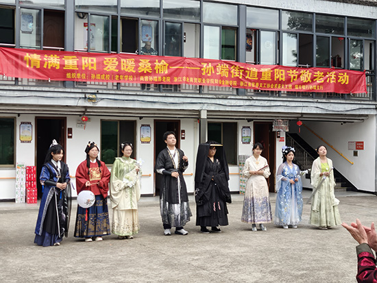 最后,浙江農商院財會金融學院學生也為老人們獻上了漢服走秀和歌曲演唱等節目,他們充滿朝氣、充滿活力的表演如同一陣陣清風,吹進了老人們的心田,吹開了一張張笑臉。