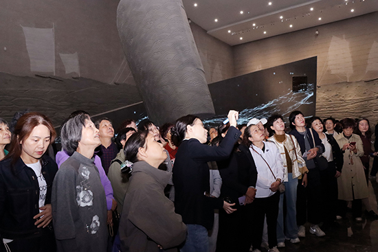 浙東運河博物館內(nèi),老年學(xué)員們在講解員的帶領(lǐng)下,沿“運河緣起—水運興盛—文化交融” 的展陳脈絡(luò)緩步前行。講解間隙,老年學(xué)員們不時提問交流,探討運河對浙東地區(qū)民俗、商貿(mào)、城市發(fā)展的深遠(yuǎn)影響。在四十分鐘的研學(xué)時光里,追溯運河歷史脈絡(luò),從千年水運文化中感悟時光沉淀的生命力量。