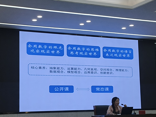 培訓期間,浙江省教育廳教研室初中數(shù)學教研員李惟峰作主題為《數(shù)學教育的新坐標——從知識傳授到創(chuàng)新思維》的專題講座,李老師從創(chuàng)新思維培養(yǎng)的背景、創(chuàng)新思維培養(yǎng)的關鍵、創(chuàng)新思維培養(yǎng)的建議三個維度深刻闡述了創(chuàng)新思維培養(yǎng)的重要性、內容和路徑,為參訓教師從“知識傳授”走向“素養(yǎng)教學”的轉變提供了理念上的更新和實踐上的引領。寧波市教育局教研室初中數(shù)學教研員楊一麗作主題為《理解課標 解構教材 賦能教學》的專題講座,講座從課標主要的突破、教材修訂的主要方面、教學的思考等方面展開,同時結合課例分析讓參訓教師對課堂上如何讓學生的思維得到生長與升華有了直觀的感知,為研題提供方向和框架。湖州市教育科學研究中心初中數(shù)學教研員沈瑩琪作主題為《讓孩子學會學習:新課標下初中數(shù)學深度教學的設計與思考》的專題講座,沈老師通過幾個案例的分析讓參訓教師明白如何實現(xiàn)評價與教學的一致性并在教學中怎樣實現(xiàn)高路遷移和深度教學,同時還強調數(shù)學教師一定要學會學習,要努力把我們的數(shù)學課上得更深一點、更有味道點,讓孩子們學起來更輕松更愉快。