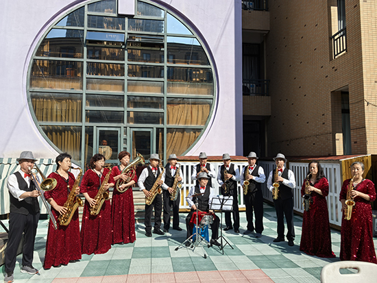 在孩子們的表演落下帷幕后,六和社區(qū)的老年學(xué)堂文藝隊伍緊接著登場。這支由社區(qū)長者組成的隊伍,用專業(yè)的才藝為活動再添精彩,將重陽節(jié)的祝福直接送到幼兒園小朋友的爺爺奶奶心中。