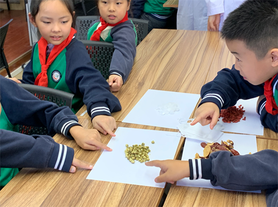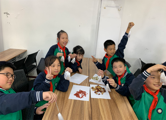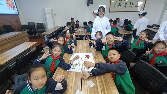 養生茶體驗環節更是氣氛熱烈。2506班的同學們準備了菊花、枸杞、紅棗等藥材,手把手教小學生們配制“養肝明目茶”。在一片歡聲笑語中,一杯杯暖心的養生茶氤氳著藥香,更傳遞著濃濃的敬老情誼。