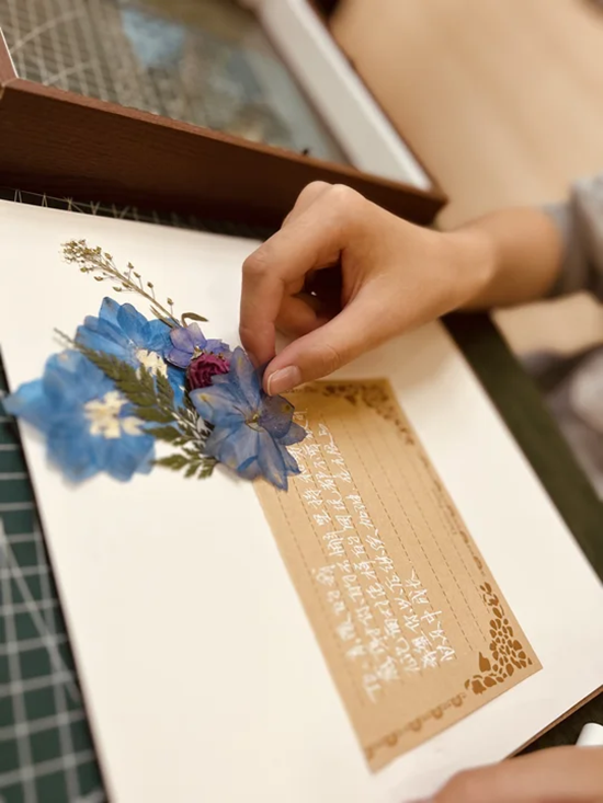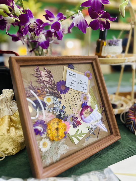 隨后,大家親手挑選干花,設計制作獨一無二的鮮花相框。視覺的美感與手作的專注,本身就是一種極佳的療愈。每一片花瓣的粘貼,都是內心秩序與美好的重建。