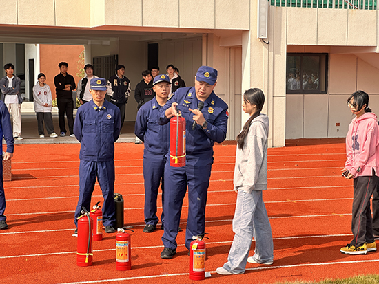 疏散環節結束后,消防專家現場教學環節接踵而至。海寧市消防救援大隊胡升輝隊長與尖山專職消防隊白效林隊長,分別結合近年來發生的典型校園火災案例,向師生們系統講解了日常學習生活中的消防安全知識、常見火災隱患的排查與防范、以及火場自救互救的關鍵措施。理論講解深入淺出,警示性強。隨后,在消防隊員的指導下,師生代表踴躍參與了滅火器、消防水帶等常用消防器材的操作體驗和油盆滅火實操演練。通過“零距離”接觸和親身實踐,師生們有效掌握了撲救初期火災的基本技能和應急救援處置要領,對消防安全有了更為直觀和深刻的理解。