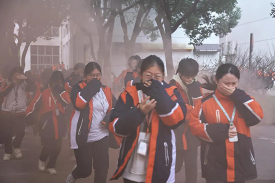 在各個路口和樓梯轉角,執(zhí)勤老師們反復提醒學生“捂住口鼻、壓低身體”,規(guī)范的指導語此起彼伏。學生們沉著冷靜,按照預定路線快速向操場集結,整個過程忙而不亂,緊張有序。