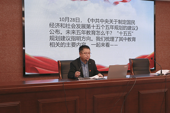 活動伊始,學院黨總支副書記、院長金曙同志嚴格落實“第一議題”制度,率先領學了黨的二十屆四中全會公報的核心要義與精神實質。他聚焦全會提出的“‘十五五’時期是基本實現社會主義現代化的關鍵時期”這一重大判斷,緊密結合當前教育領域的發展規劃與學院實際,進行了深入淺出的講解。金曙強調,全體黨員必須深刻領會“兩個確立”的決定性意義,增強“四個意識”、堅定“四個自信”、做到“兩個維護”,以理論上的清醒確保政治上的堅定。