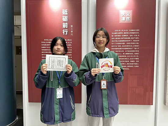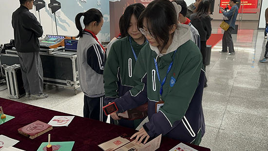 活動現場,學生還親手體驗了“鐵骨錚錚”活字印刷、“征途印記”雕版印刷等互動項目。這種沉浸體驗式的活動引發了團員學生深刻地思考與感悟。電商231班沈嘉怡同學動情地分享道:“在湖師院這場巡展里,我看見北上抗日先遣隊以孤旅赴絕境、用熱血種星火——他們把“救亡”刻進骨血,才讓《可愛的中國》的溫度傳到今天。我們捧著這束光,更該把這份赤誠,走成腳下的路。”