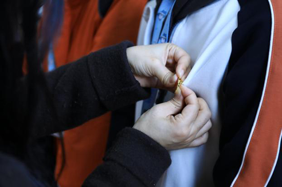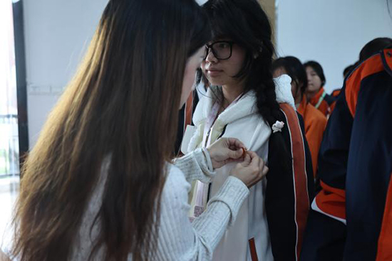 隨后,團(tuán)委老師逐一為新團(tuán)員佩戴團(tuán)徽,全體新團(tuán)員面向團(tuán)旗莊嚴(yán)宣誓。這枚小小的團(tuán)徽,不僅是共青團(tuán)員的身份標(biāo)識,更承載著組織的信任與時代的重托,象征著新團(tuán)員們接過青春接力棒、續(xù)寫奮進(jìn)篇章的堅定決心。