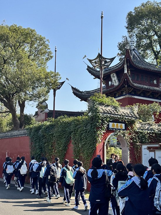 本次徒步全程約6公里,途經湖濱公園、圓融廣場、錢湖秘境、下水濕地公園等多個景點,融合了東錢湖的自然生態與歷史文化資源。“通過這場行走的課堂,學生們不僅在體能與意志的磨礪中提升了堅韌品格,更在小導游的娓娓講述中,沉浸式地追尋范蠡的經世智慧、王安石的治郡理念與史氏家族的家國情懷,在行走中觸摸歷史脈搏,解碼東錢湖文脈深處所蘊藏的先賢哲思與民本情懷。”副校長林學偉表示。