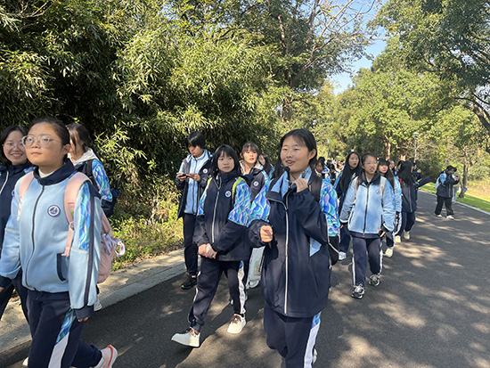 11月20日,寧波東錢湖旅游學校組織高一年級700余名學生開展“毅路同行,碳尋綠水青山”環湖徒步活動。在秋高氣爽、風景如畫的東錢湖畔,學生們開啟了一次“行走的課堂”,以腳步丈量山水,以實踐滋養成長。這已是該校連續第五年舉辦此類毅行活動,不僅鍛煉了學生的體魄,在學生導游團的引領下,深化了他們對校園周邊山水與歷史文化的理解。