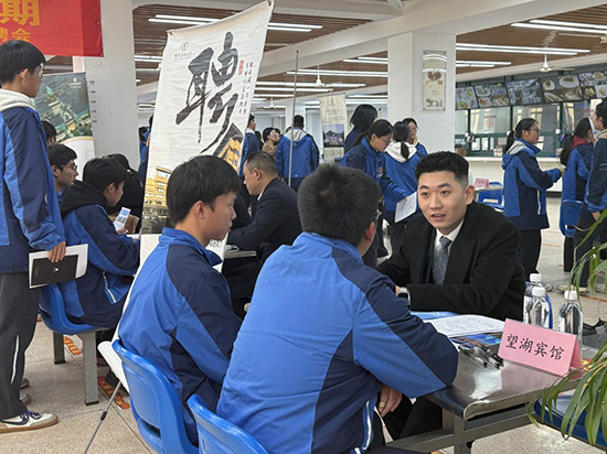 11月21日下午,校園內洋溢著熱烈的求職氛圍,學校2023 級3+2班實習生校企招聘會在報告廳與食堂同步舉行。本次招聘會吸引了30余家優(yōu)質企業(yè)參與,涵蓋酒店服務、文旅管理、商務接待等多個領域,為學生提供了豐富的實習崗位選擇?;顒右潦迹猩鷮嵱柼幹魅螌O老師在報告廳向各企業(yè)領導詳細解讀了學校實習生管理規(guī)范、實習考核標準及校企合作保障機制,強調了 “安全第一、學以致用、共同成長”的實習理念,為校企雙方高效合作奠定了良好基礎。隨后,招聘環(huán)節(jié)在學校食堂正式啟動,學生們手持精心準備的簡歷,穿梭于各個企業(yè)展位之間,主動與企業(yè)招聘負責人溝通交流,展現(xiàn)了良好的職業(yè)素養(yǎng)與積極的求職態(tài)度。各班班主任全程在旁提供指導,針對簡歷優(yōu)化、面試技巧等問題為學生答疑解惑,助力學生精準對接心儀崗位。企業(yè)方通過現(xiàn)場咨詢、初步面試等方式,全面考察學生的綜合能力,不少學生當場與企業(yè)達成初步實習意向。?