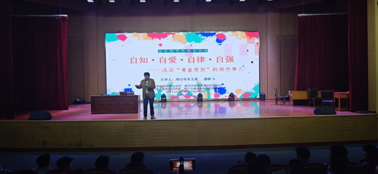 與此同時,在男生專場,海寧市關工委報告團講師邵躍飛老師以“自知•自愛•自律•自強”為主題展開講座。邵老師以幽默問答開場,迅速拉近與學生的距離。他針對高中生的生理心理困惑,深入淺出地講解青春期發育特點與心理波動成因,強調良好衛生習慣與健康生活方式的重要性。邵老師指出:“青春期的變化是生命自然的禮物,學會接納與呵護自己是邁向成熟的第一步。” 在互動環節,男生們積極提問,問題涉及自我認同、壓力應對等話題,邵老師用生動比喻和真實案例回應,鼓勵大家以自信和責任感面對成長挑戰。講座結束后,仍有同學駐足請教,現場氛圍熱烈。