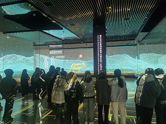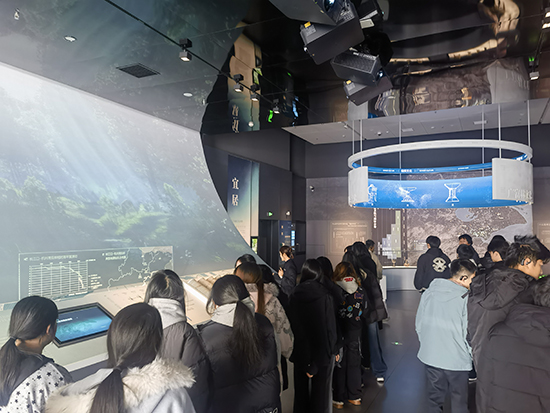 隨后,隊伍移步至“茅山遺址展廳”。該展廳集中展示了與良渚文化密切相關的珍貴遺存。面對一件件古樸精美的陶器、玉器,同學們駐足細觀,認真聆聽先民們的生產方式、社會組織與精神信仰,仿佛跨越千年,與古老文明展開了一場無聲卻深情的交流。