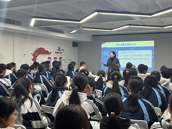 王老師結合行業前沿案例,詳細解析了跨境電商的發展趨勢、核心崗位及能力需求,更針對中職學子的成長特點,鼓勵大家“不要因中職生的身份妄自菲薄,明確目標、深耕技能、多練多做,同樣能在職業舞臺上嶄露頭角”。親切的話語與實用的建議,讓同學們備受鼓舞。