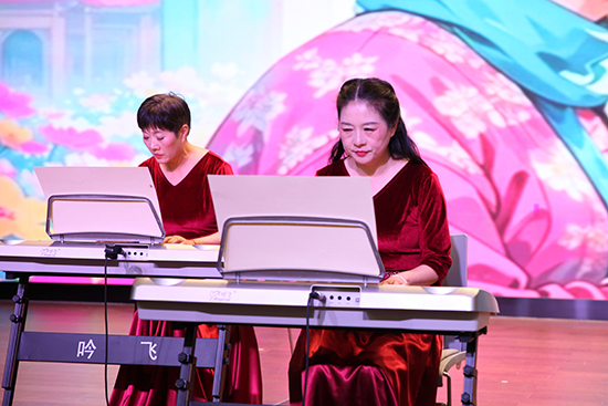 電子琴合奏《攙扶》率先登場,四位學(xué)員用悠揚的旋律傳遞出人與人之間相互扶持的溫情與力量,為演出奠定了溫暖的基調(diào)。