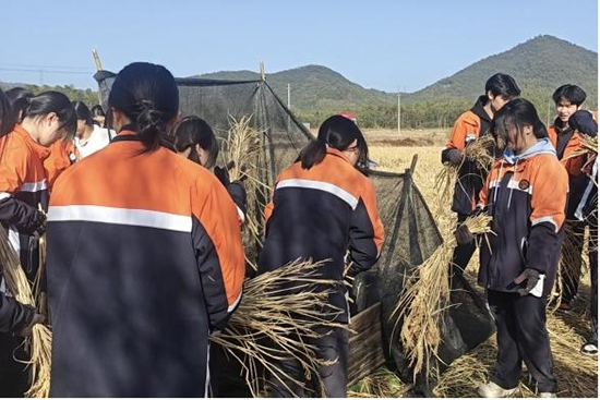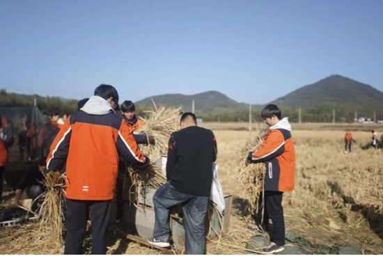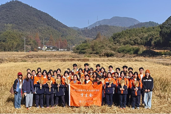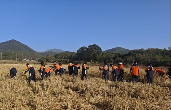 在農事體驗環節,學生干部們深入田間地頭,參與割稻、脫粒等農耕勞作。大家挽起褲腳、踏入泥地,在汗水與歡笑中體驗勞動的艱辛與豐收的喜悅,深刻領悟到“一粥一飯,當思來之不易”。勞作結束后,同學們還將收割的稻谷制作成稻草花束,留下難忘的勞動記憶。
