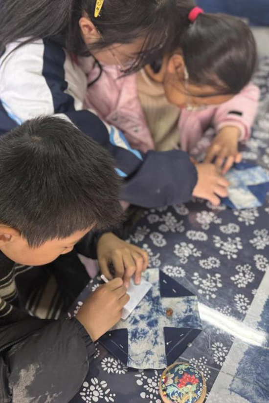活動伊始,剡溪小學(xué)的教室里便彌漫著探索與期待的氣息。桌上擺放的,不再是普通的書本與文具,而是一塊塊經(jīng)由特色藍(lán)染課程浸染出的、色澤深邃、紋路獨特的藍(lán)印花布。這些布料,如同承載著天空與海洋秘密的畫卷,正等待著小小藝術(shù)家們賦予它們新的生命。