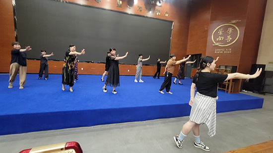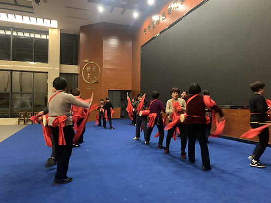 每周,文化禮堂里都準時回響著鏗鏘的腰鼓聲與悠揚的舞曲。蘭亭成校在此系統開展的“3+1”式課程培訓(腰鼓、舞蹈、智能手機應用),構成了社區教育的堅實內核。