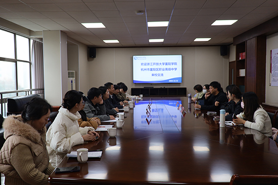 12月12日,浙江開(kāi)放大學(xué)富陽(yáng)學(xué)院護(hù)理教研組一行18人,在學(xué)院黨委委員汪利章的帶領(lǐng)下,來(lái)到海寧衛(wèi)生學(xué)校(海寧市綜合高級(jí)中學(xué))開(kāi)展交流活動(dòng),校長(zhǎng)陳杰、副校長(zhǎng)沈孝麗熱情接待了來(lái)賓。
