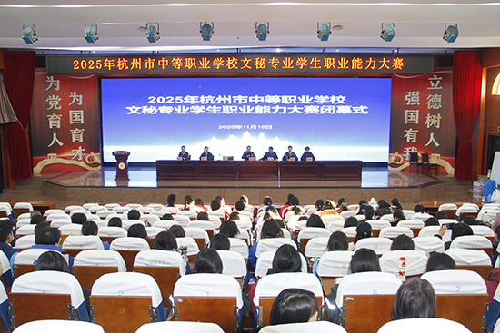 2025年11月19日,由杭州市教育局和杭州市人力資源和社會保障局聯合主辦、杭州市教育科學研究院、杭州市富陽區職業教育中心承辦的杭州市中等職業學校文秘專業學生職業能力大賽在秋日暖陽中圓滿落下帷幕。這場為期一天的專業賽事,匯聚了全市8所中職學校的48位文秘專業學子,他們在一系列貼近實際工作的競賽項目中展開激烈角逐,充分展現了現代文秘人才的過硬技能和綜合素養。本次競賽緊扣文秘專業人才培養目標,突出文秘真技能、新技能與綜合技能,結合人工智能時代文秘專業轉型發展和職業教育特色,將原先三個賽項合并為一個賽項,全面檢驗學生在“辦文、辦會、辦事”三大核心領域的實踐能力,這標志著杭州市文秘職業能力大賽步入3.0時代。