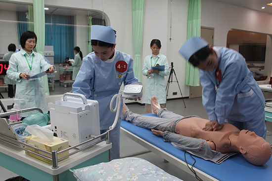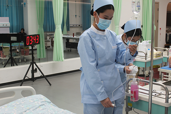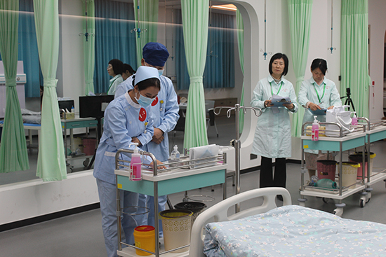 大賽設理論與技能兩大模塊,考評體系科學嚴謹。理論考試時長40分鐘,覆蓋護理基礎、急救規范等內容,占總成績10%,重點考察選手知識儲備;技能實操分兩個賽道,占比90%,更重實戰。