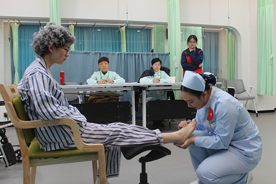 第一賽道要求2名選手協作完成呼吸心跳驟停患者救護,含雙人心肺復蘇與靜脈輸液,15分鐘內完成,占總成績50%;第二賽道由組內抽簽1人完成老年患者跌倒照護,涉及右踝關節扭傷包扎與輪椅運送,同15分鐘完成,占40%。兩賽道均配標準化病人還原真實場景,評委以專業公正態度評分,保障結果可信。